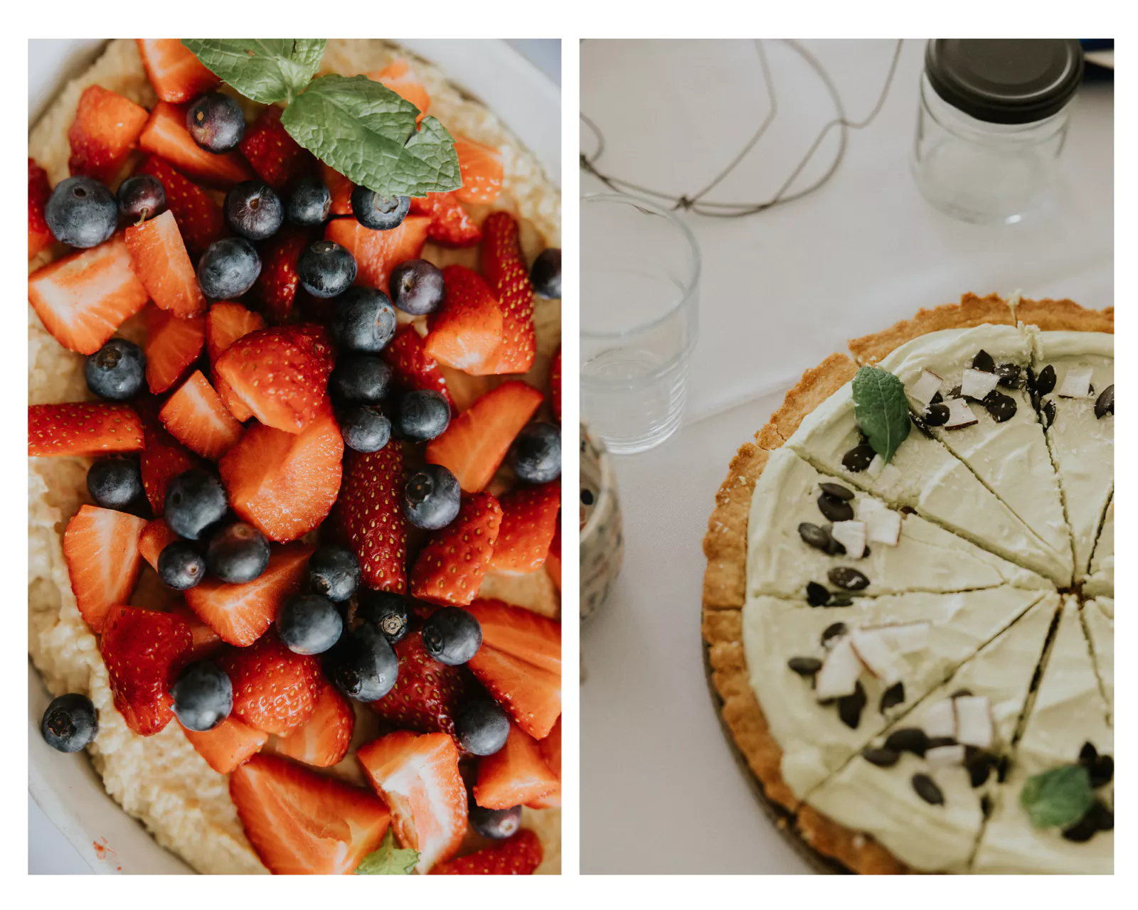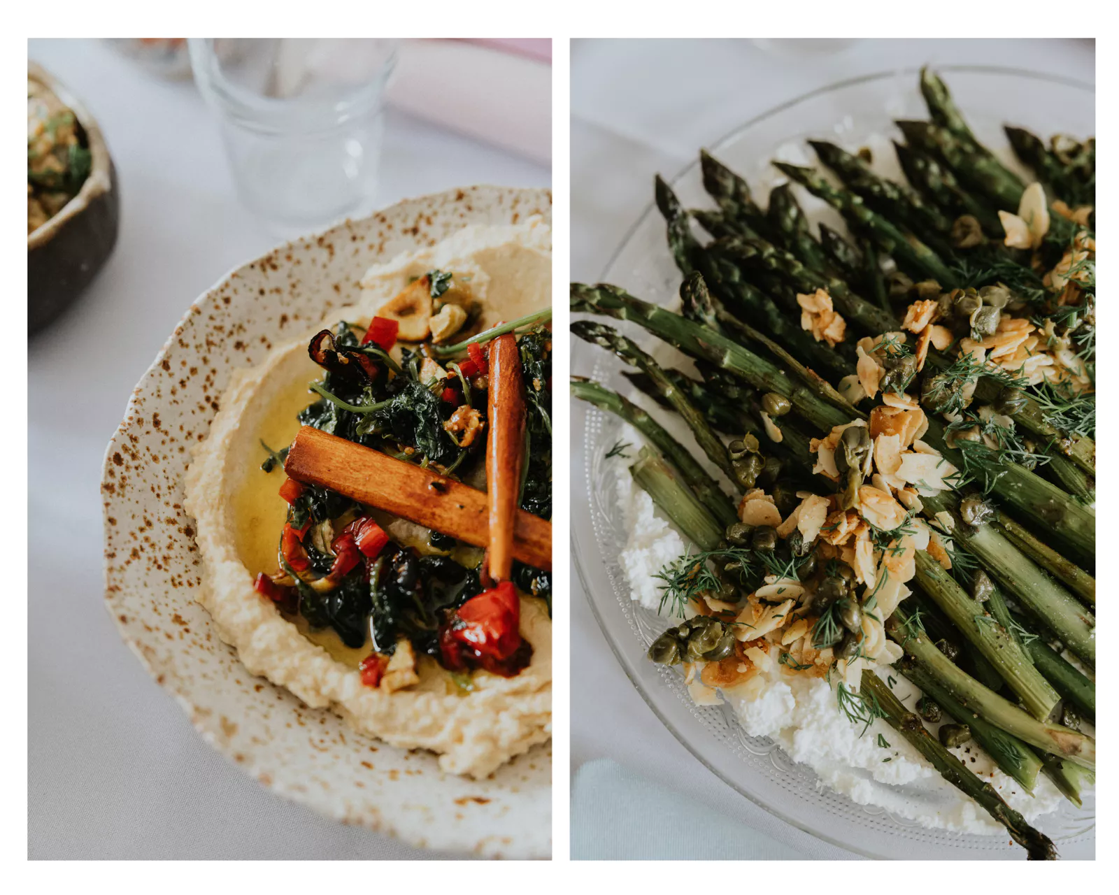 Podczas brunchu królowały lekkie, bardzo wiosenne potrawy. Początek sezonu warzywnego oznaczał tylko jedno – szparagi. Nie mogło ich zabraknąć na tym stole. Podane na ricotcie z kaparami i płatkami migdałowymi to chyba jedna z moich ulubionych form podania szparagów. Do tego tarta z botwinką, fetą, selerem naciowym, pomidorki koktajlowe z kardamonem i limonką, a na deser tarta owsiana z kremem na białej czekoladzie, mascaprone i matchy. Wiosenny obłęd.