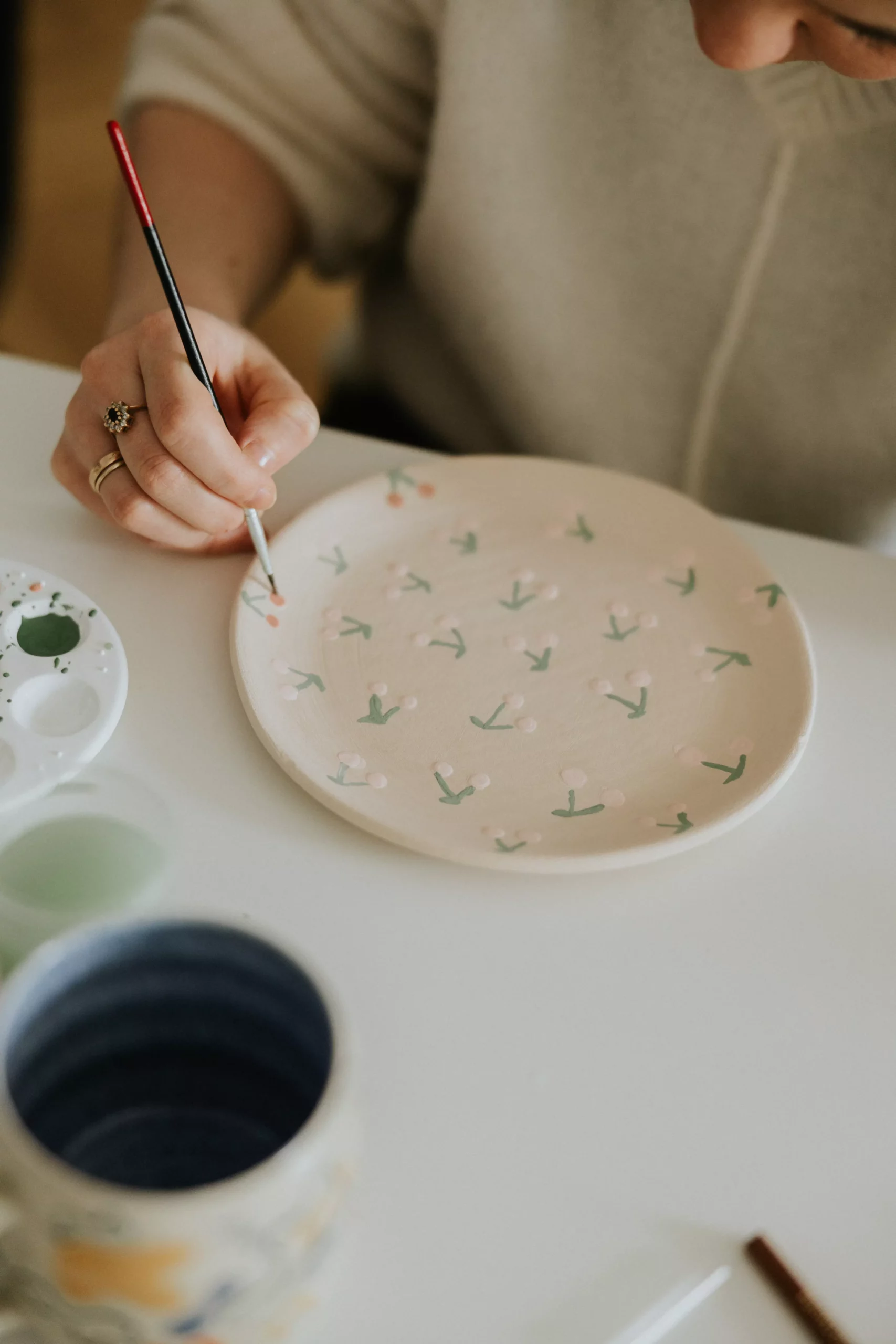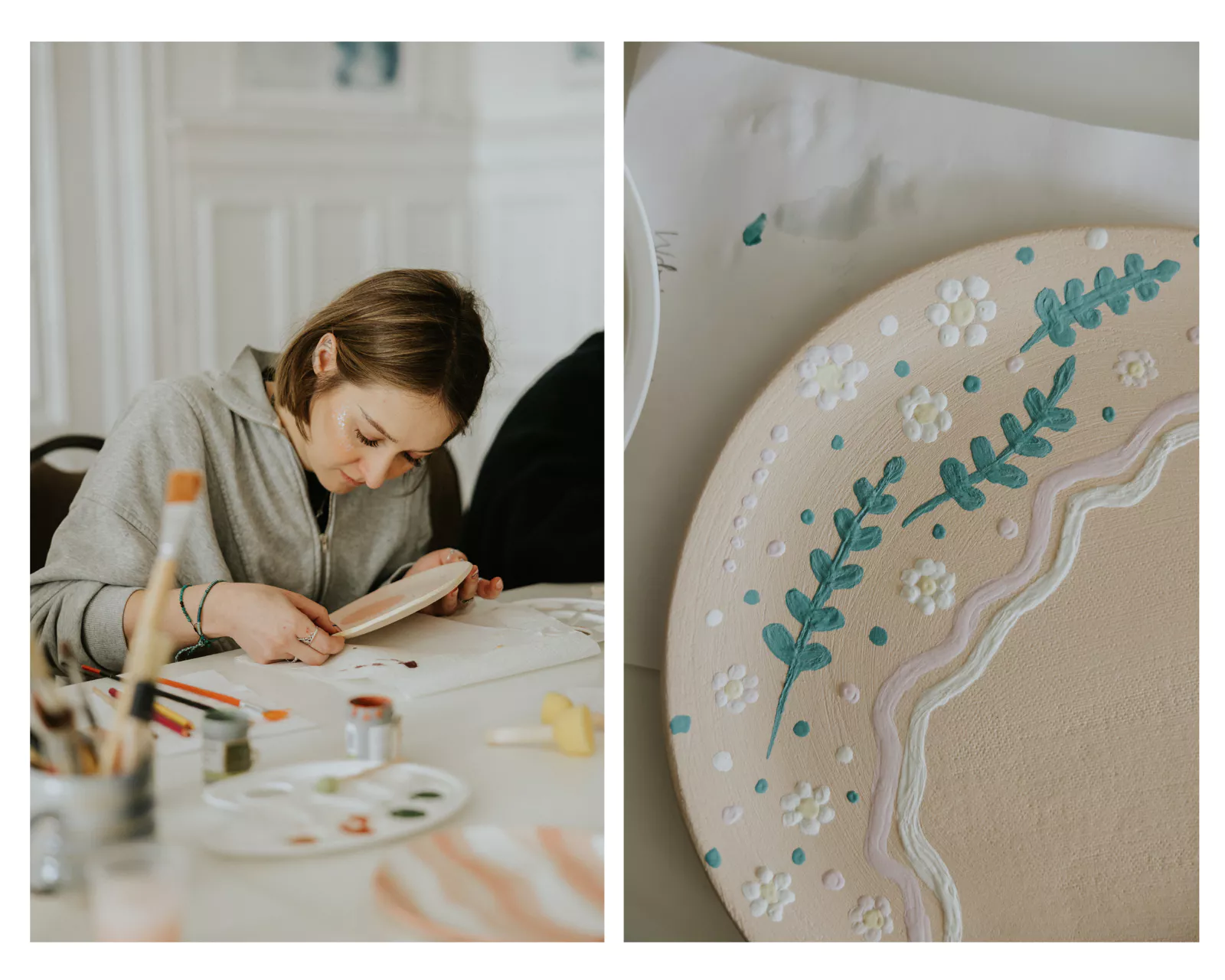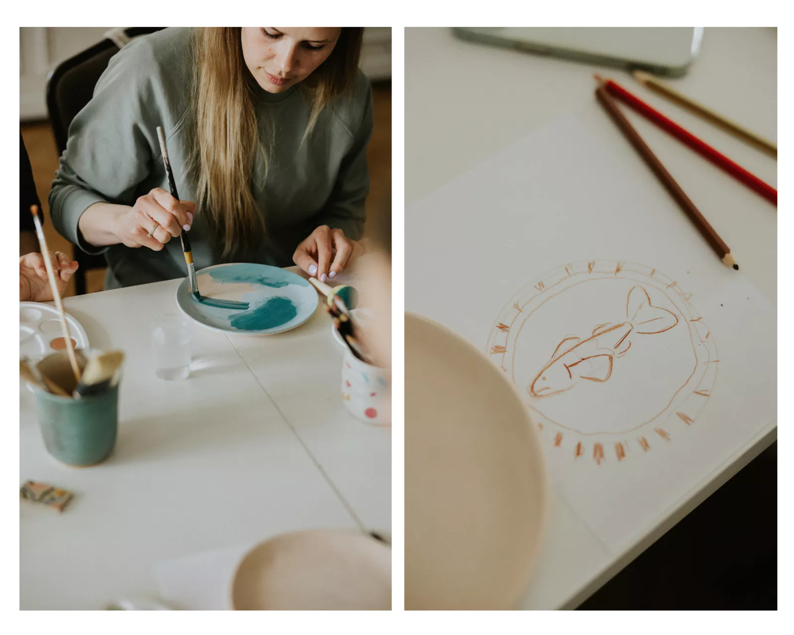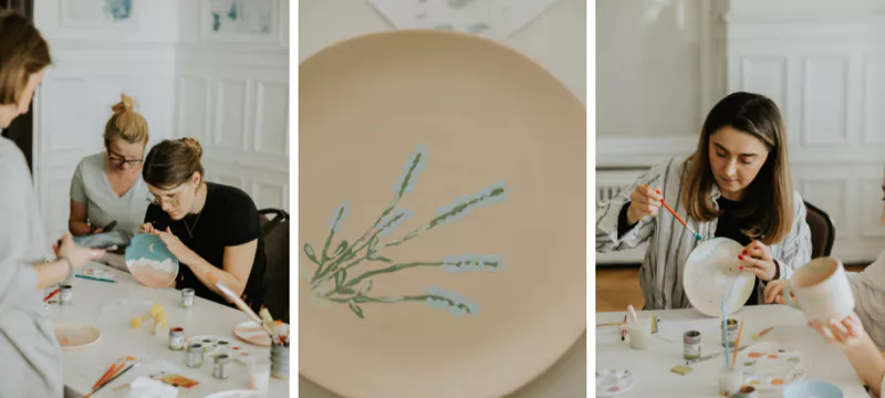 Po brunchu przyszedł czas na ceramikę, a dokładnie malowanie wcześniej wypalonych przez Natalię talerzyków.