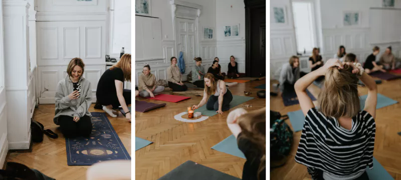 Niedzielne wydarzenie zaczęłyśmy od praktyki jogi. Magda poprowadziła ponad godzinną praktykę, która miała na celu pełne rozluźnienie po tygodniu pełnym napięć i pobudzeniu wewnętrznej kreatywności do dalszej części spotkania. Zadbała o każdy detal tej praktyki. Po opowieściach dziewczyn, które brały udział w zajęciach, aż zazdrościłam tego porannego rozpieszczenia dla ciała.