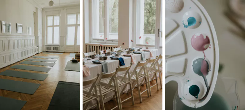 Wiosna była naszą inspiracją. Łącząc siły z Magdą z Bardzo Boskie i Natalia Izbicka Ceramika, chciałyśmy dać powód do pobudzenia kreatywności i siły w każdej z uczestniczek. To spotkanie było ucztą dla ciała, ducha i wyobraźni. To był impuls do zadbania o siebie, chwilę oddechu i zatracenia się w procesie twórczym. Czysta przyjemność otulona promieniami wiosennego słońca.