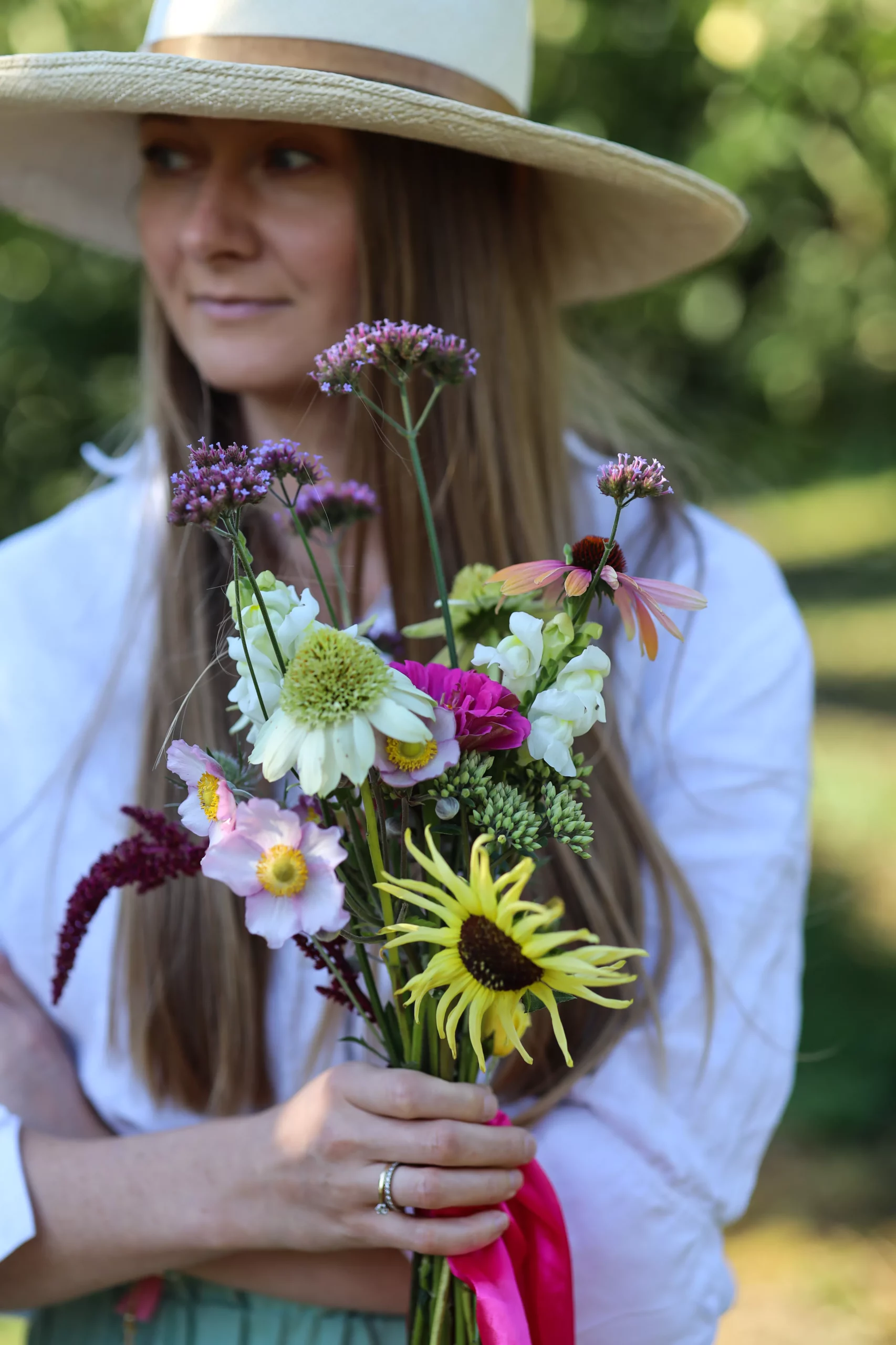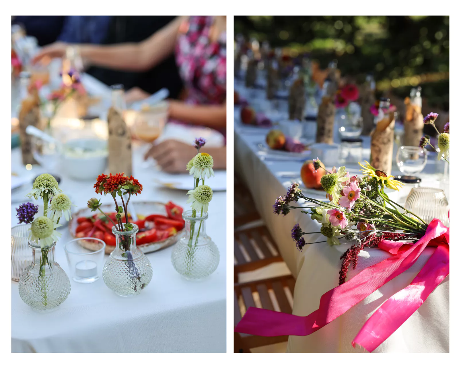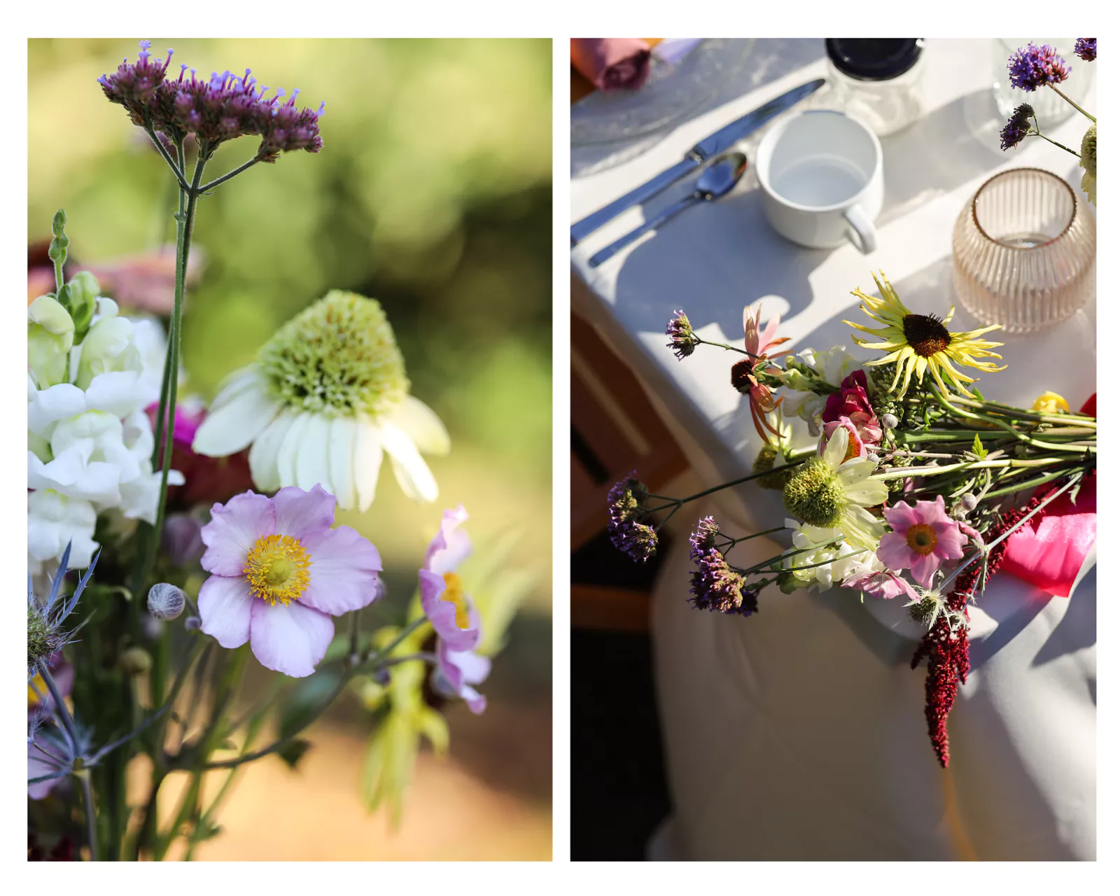 Z każdej strony muskały nasz zielone gałązki jabłonek, jednak ten brunchowy stół, nigdy nie będzie pełny jeżeli zabraknie na nim kwiatów. Tym razem postawiłam na moje tegoroczne odkrycie, czyli zaopatrzyłam się w przepiękne, letnie okazy kwiatów z lokalnej farmy kwiatowej.