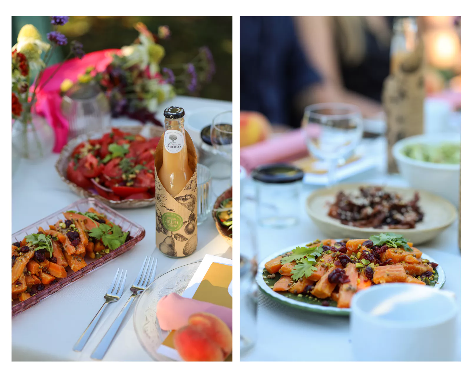 Środek lata, ciepły wieczór (no prawie) i menu, które było odzwierciedleniem tego momentu w roku. Nie zabrakło pomidorów, malin, brzoskwiń, moreli, młodej kapusty czy marchewek. Można było szaleć, a to chyba uwielbiam najbardziej. Ten luz w komponowaniu menu.