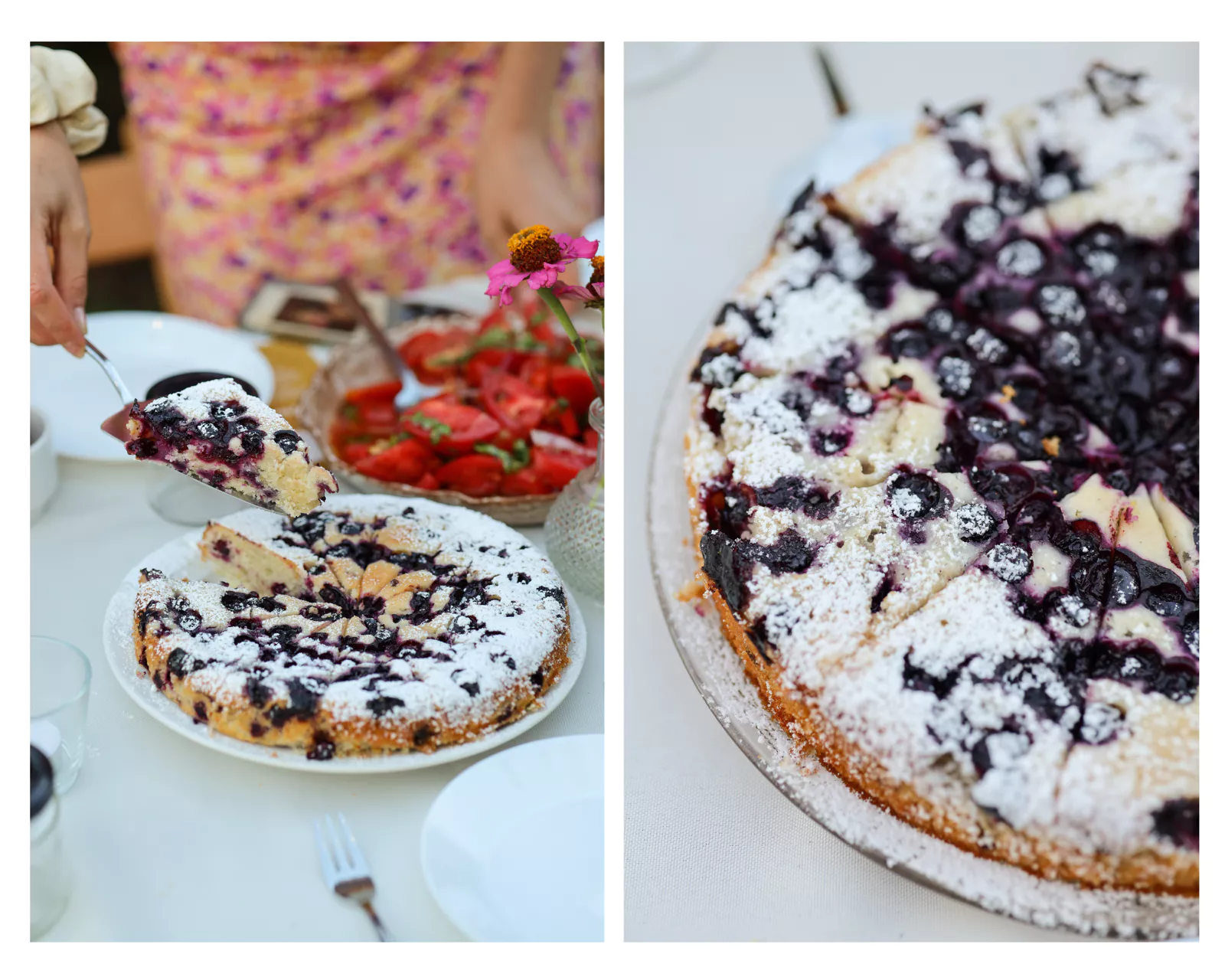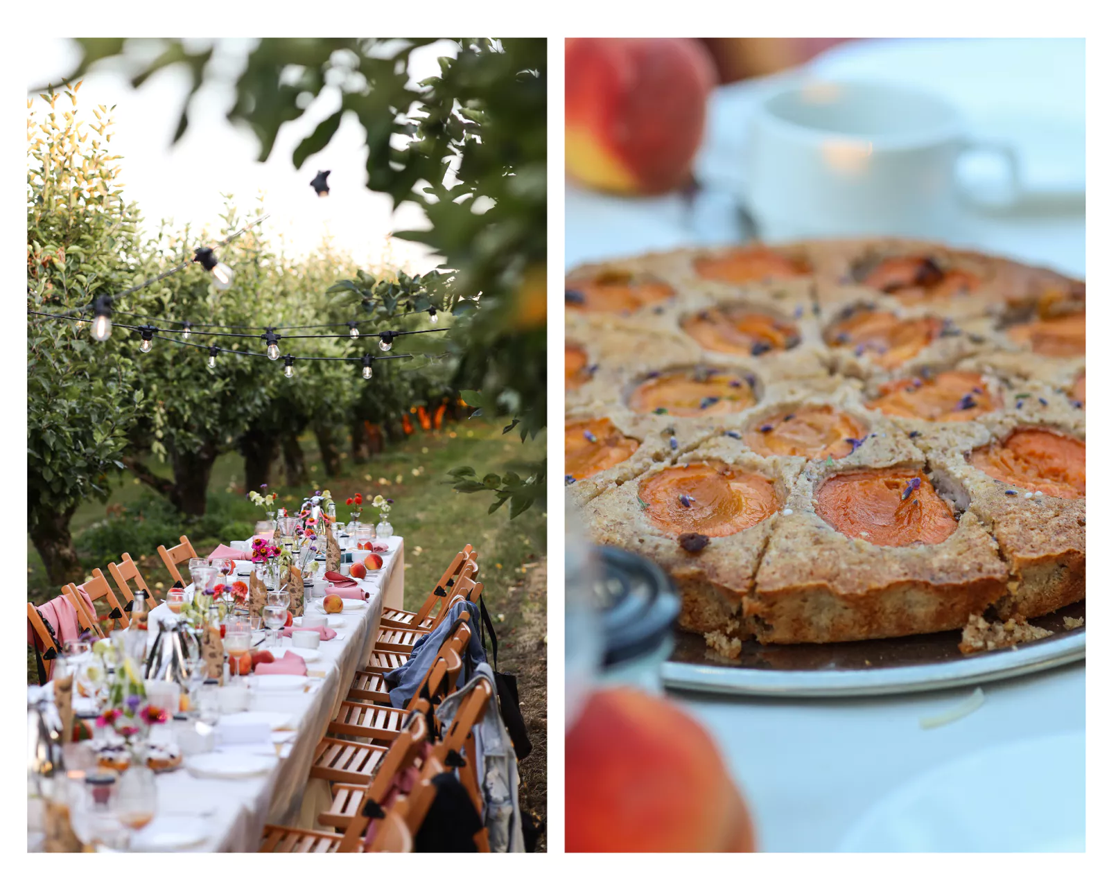 Na deser zostały podane dwa ciasta: lawendowe ciasto orzechowe z morelami oraz wegański placek cytrynowy z borówkami. A do tego, idealnie pasowało sok jabłkowy z papierówek od Sady Rajewscy.