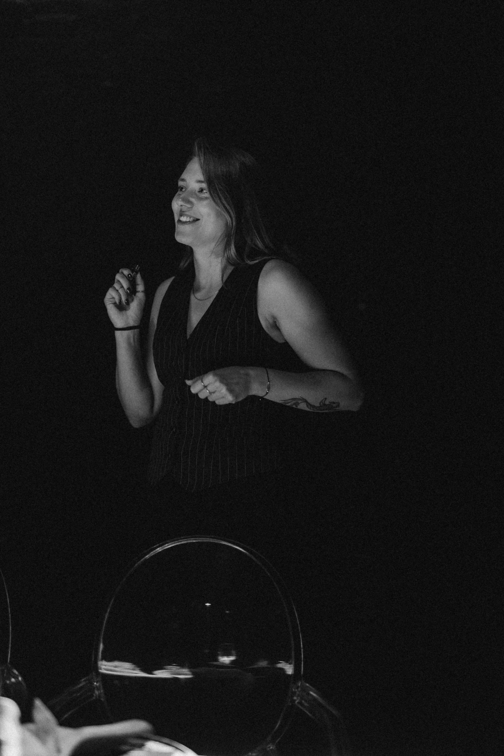 Czerń. Ta wszechobecna czerń. Wodzę wzrokiem po każdym elemencie, po nierównościach podłogi, rysach po odbytych spektaklach. Zgubiłam się w tej otchłani. Bezpowrotnie się w tym zatraciłam. Zabrała mnie wizja tego, że reżyserem najbliższego spektaklu będę ja. Stoję przez chwilę na wprost sceny i oczami wyobraźni maluje obraz z przyszłości. Dokładnie widzę, jak będzie wyglądał stół, że światła reflektorów będą odbijały się od kryształowych kieliszków, a talerze z jedzeniem będą wirowały, podawane z rąk do rąk.
