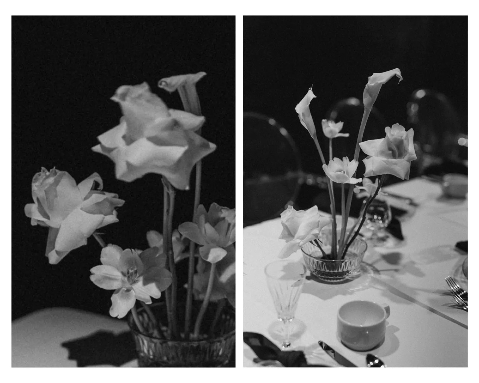 Dopełnieniem całej stylizacji stołu oczywiście były kwiaty. Zależało mi, aby kompozycje podtrzymały minimalistyczny i klasyczny klimat. W kryształowych miseczkach od Manimali znalazły się eleganckie, białe kalie, róże i tulipany. Czysta prostota i elegancja. Wizualny majstersztyk.