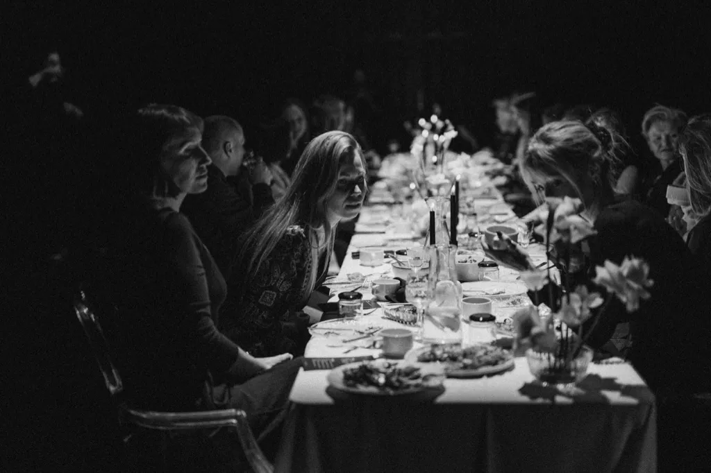 Po przekroczeniu drzwi na główną scenę oczom ukazuje się długi stół, na który skierowane jest światło teatralnych reflektorów, bo to właśnie on gra pierwsze skrzypce podczas tego brunchowego przedstawienia.