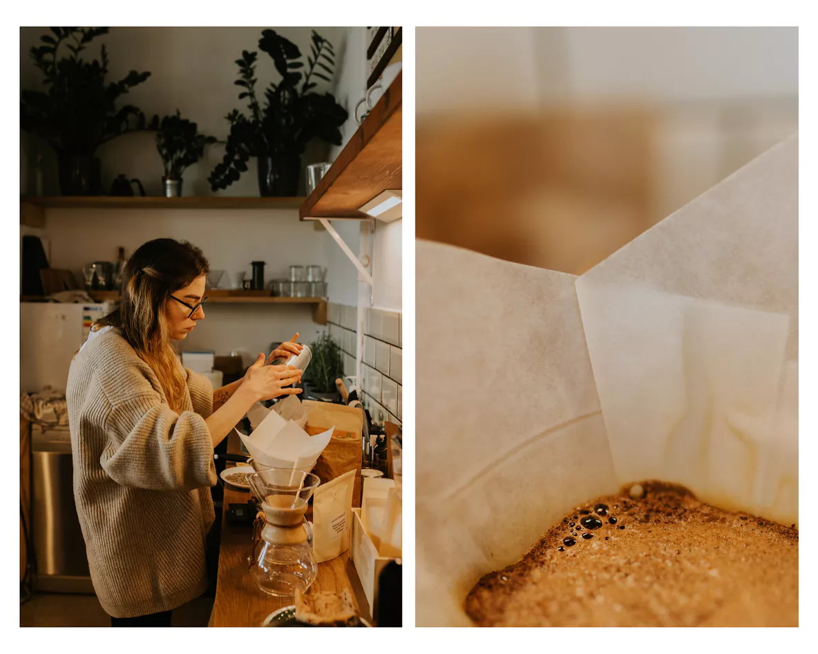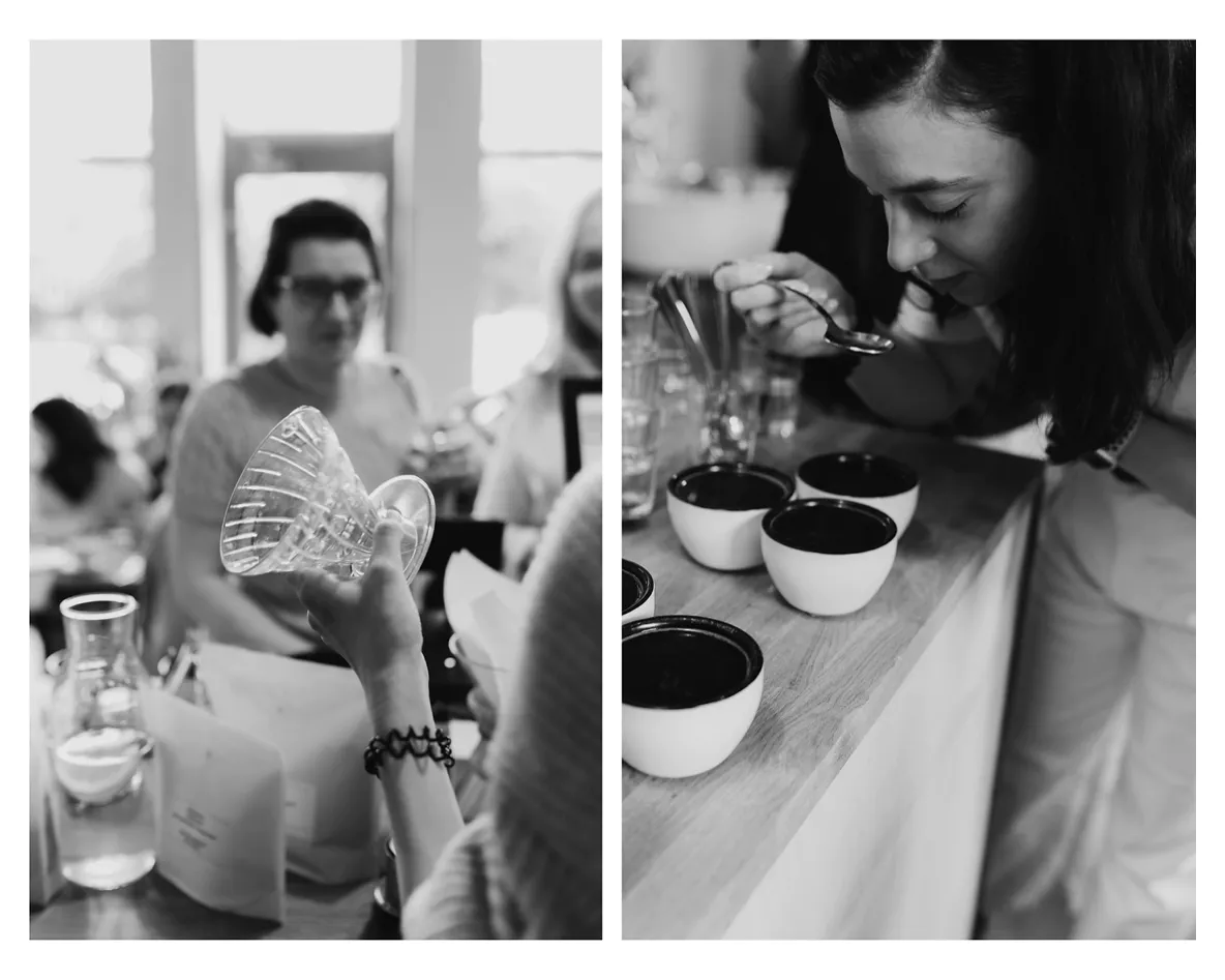 Michalina wprowadziła nas w świat wypalania ziaren kawy, opowiedziała o różnych metodach i o tym, jak rozpoznawać smaki oraz aromaty. Oprócz cuppingu każdy z gości, miał możliwość spróbowania kaw parzonych na trzy różne sposoby: chemex, klasyczna z ekspresu oraz nitro.